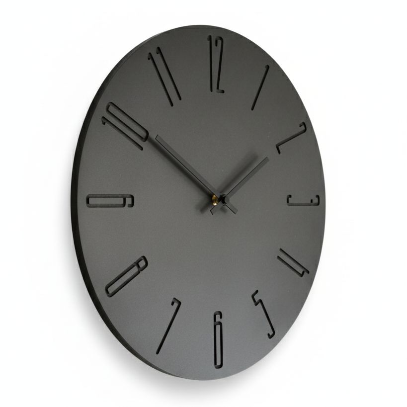 This minimalist wall clock is a timeless design element that brings calm elegance and modern character to any interior. Crafted from black MDF and finished with a smooth matt lacquer, the clock features a clean dial with cut-out numerals and slim hands, creating a subtle yet distinctive visual presence.