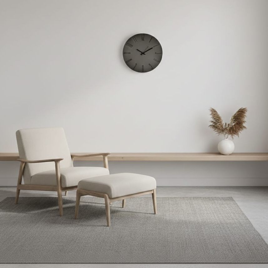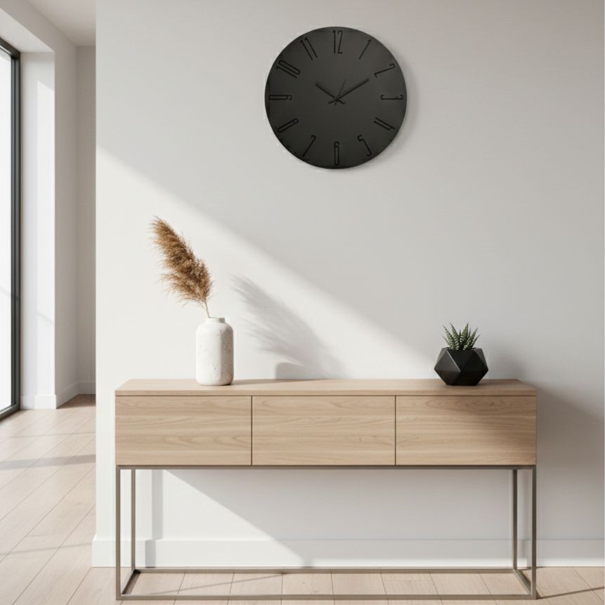 Its restrained design makes it ideal for contemporary, Scandinavian, and minimalist interiors, whether placed in a living room, office, hallway, or bedroom. The clock’s generous 400 mm diameter ensures good readability while remaining visually balanced on the wall.